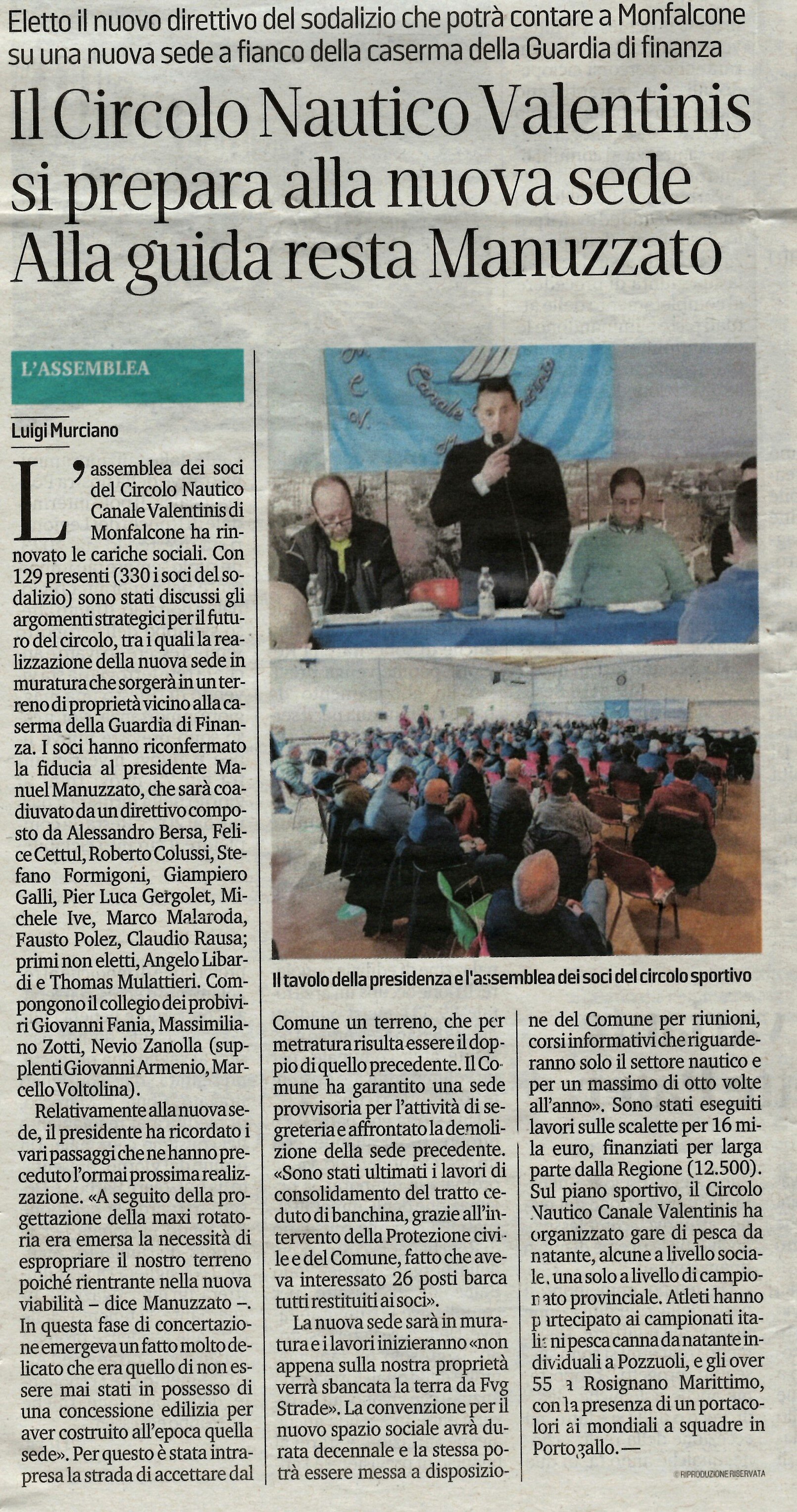Domenica 2 febbraio 2025 presso il Centro Anziani di Monfalcone, che ringraziamo sempre per l'ospitalità, si è tenuta l'Assemblea Ordinaria e Straordinaria del Circolo Nautico Canale Valentinis, che ha visto, tra gli argomenti in discussione, l'approvazione del capitolato di spese e l'autorizzazione alla stipula di un mutuo per la realizzazione della nuova Sede Sociale.